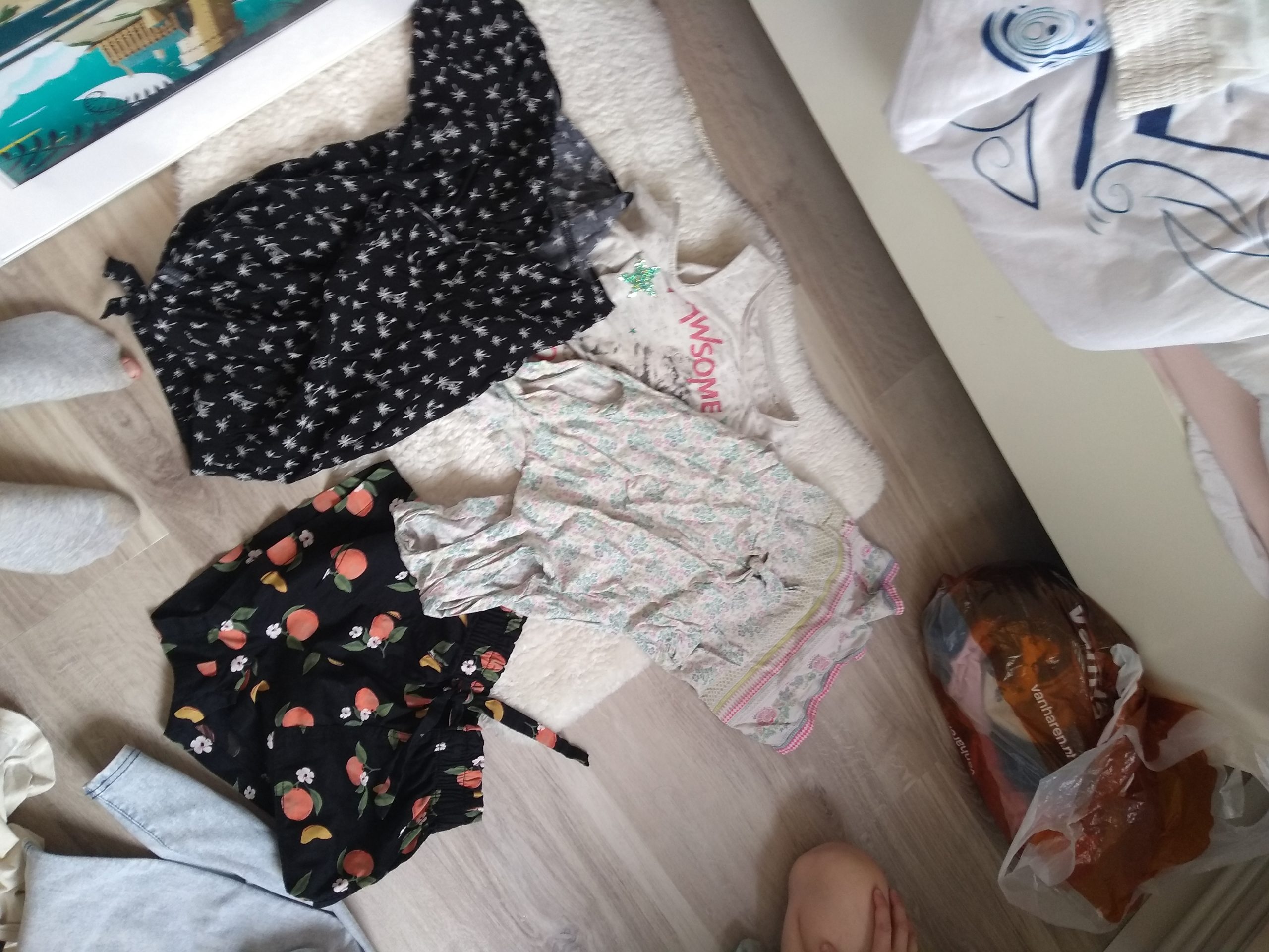 de eerste foto zijn de kleren die Milia aan mij heeft uitgeleend, en andersom.