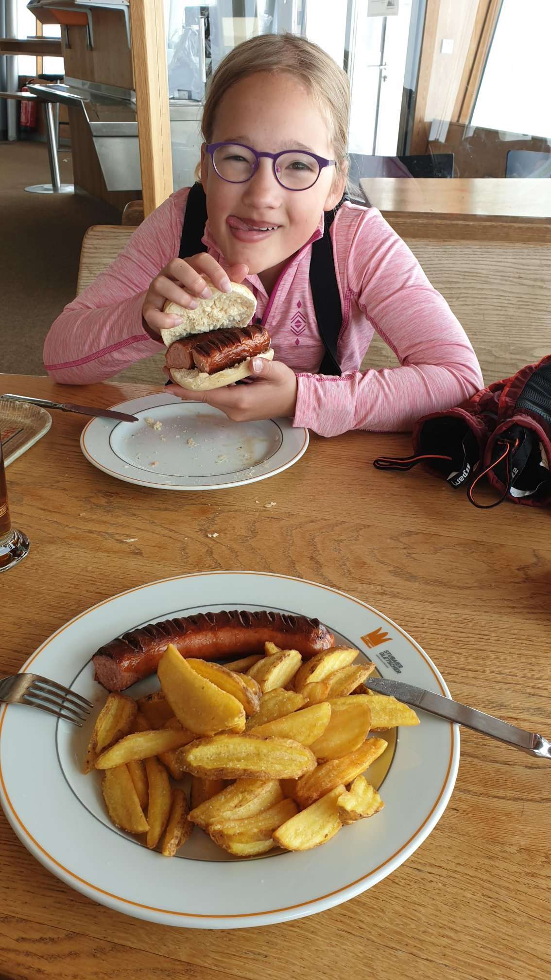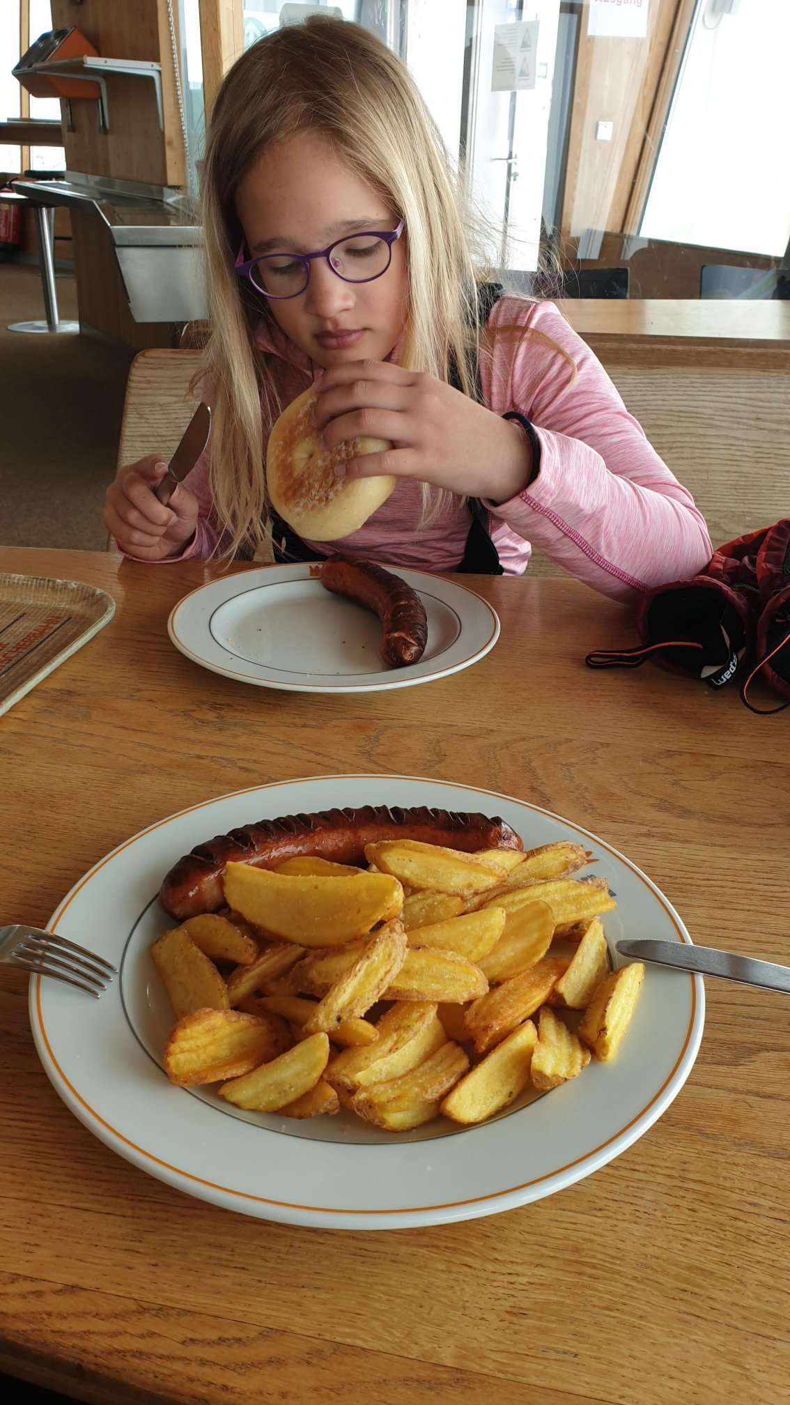 We gingen ontbijten, ik hoopte echt dat het eitje niet te kort had gekookt. Gelukkig had papa het deze keer wel goed gedaan, want gisteren was het een beetje fout gegaan. We kwamen in een korte rij bij de gondels. We stapten in bij twee oosterse mannen. PS ( ik weet niet hoor maar hun stonken echt heel erg, we hebben zelfs een raampje open moeten zetten.🙃 In de ochtend was ik best humeurig, maar toen er gebak 🍰 inkwam zat ik weer vol energie ( het was een Apfelstrudl ). Er was heel veel mist, dus we konden niks zien🙈. Gelukkig kenden we één piste heel goed, dus daar zijn we heel vaak vanaf gegaan ( eerst grote bochten tot het derde paaltje, en dan lekker super hard zonder bochten naar beneden) in het begin was het wel eng omdat je niks zag, en in één keer naar beneden gaat.😱. Maar daarna werd het steeds leuker.😄. We gingen lekker lunchen in een Stube ( klein restaurantje ) ik koos een broodje Bratwurst.😋. Toen we onze lunch op hadden, was de mist al een beetje weg. ( We gingen lunchen om half twee, dat is iets later dan normaal ). We besloten om terug te gaan via een langere route naar de gondels, we gingen mijn spullen wegbrengen naar de winkel ( die kan ik morgen gewoon weer ophalen, maar dan hoef ik er niet mee te lopen sjouwen. Want ik heb mijn spullen gehuurd, dan mag dat ). We gingen in een gondel zitten. En wat bleek, we zaten in de zelfde gondel als toen we heen gingen, want ik onthoud de nummers altijd.😄 Dat maak je eigenlijk nooit mee. Hier zijn de foto’s en video’s van vandaag.